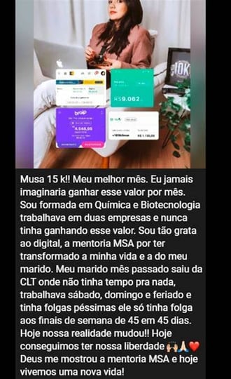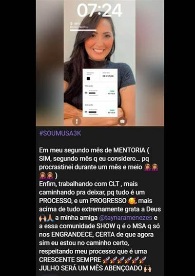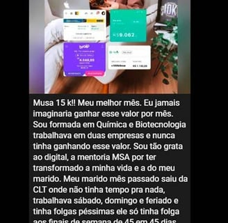 A mentoria me transformou! Hoje sou mais confiante e conquistei minha liberdade financeira.